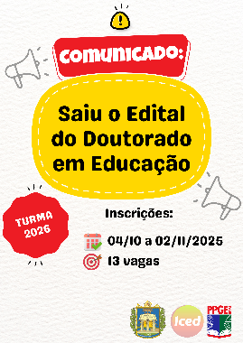 O Programa de Pós-Graduação em Educação (PPGE/Ufopa) torna público o edital do processo seletivo para o Doutorado em Educação – Turma 2026.
