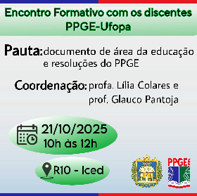 A Coordenação do Programa de Pós-Graduação em Educação – PPGE/Ufopa convoca todos os alunos para participar do I Encontro Formativo (Quadriênio 2025 - 2028).