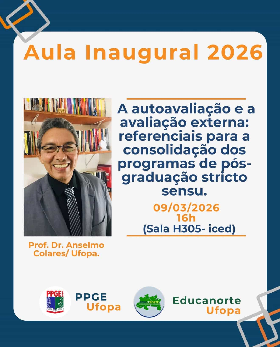 A coordenação do Pgeda - polo Santarém - convoca os discentes e docentes para participarem da Aula Inaugural conjunta dos programas PPGE e Pgeda.
